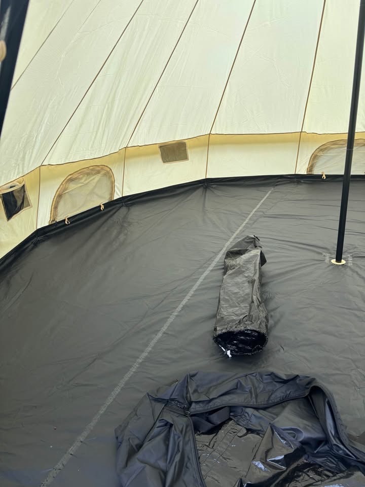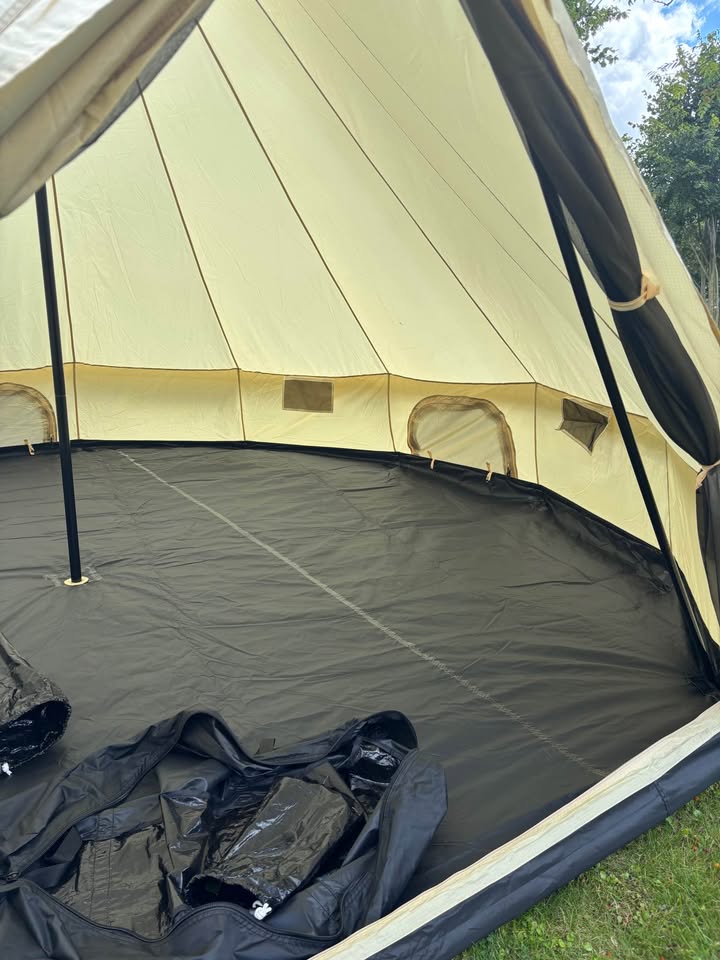 Klokketeltet er opbygget med en stabil midterstang, der giver maksimal loftshøjde og god rummelighed, mens en solid A-ramme former og støtter den store indgang. Indgangen er udstyret med myggenet, så teltet kan stå åbent på varme dage og give optimal ventilation uden uønskede insekter.